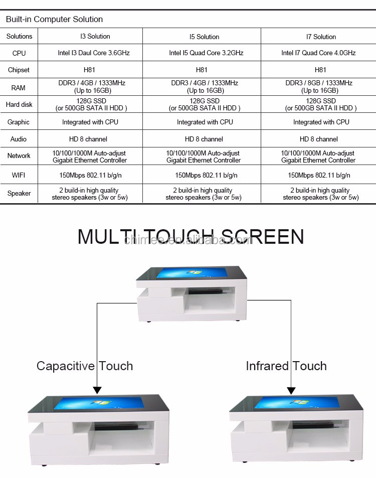 | RAM: | DDR III / 1333 / 4G (Up to 16GB); | keyword: | touch screen desk game smart table; |
