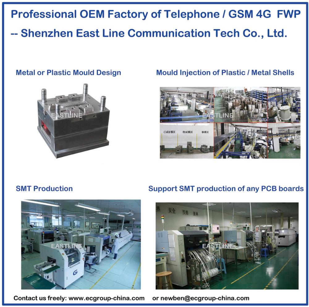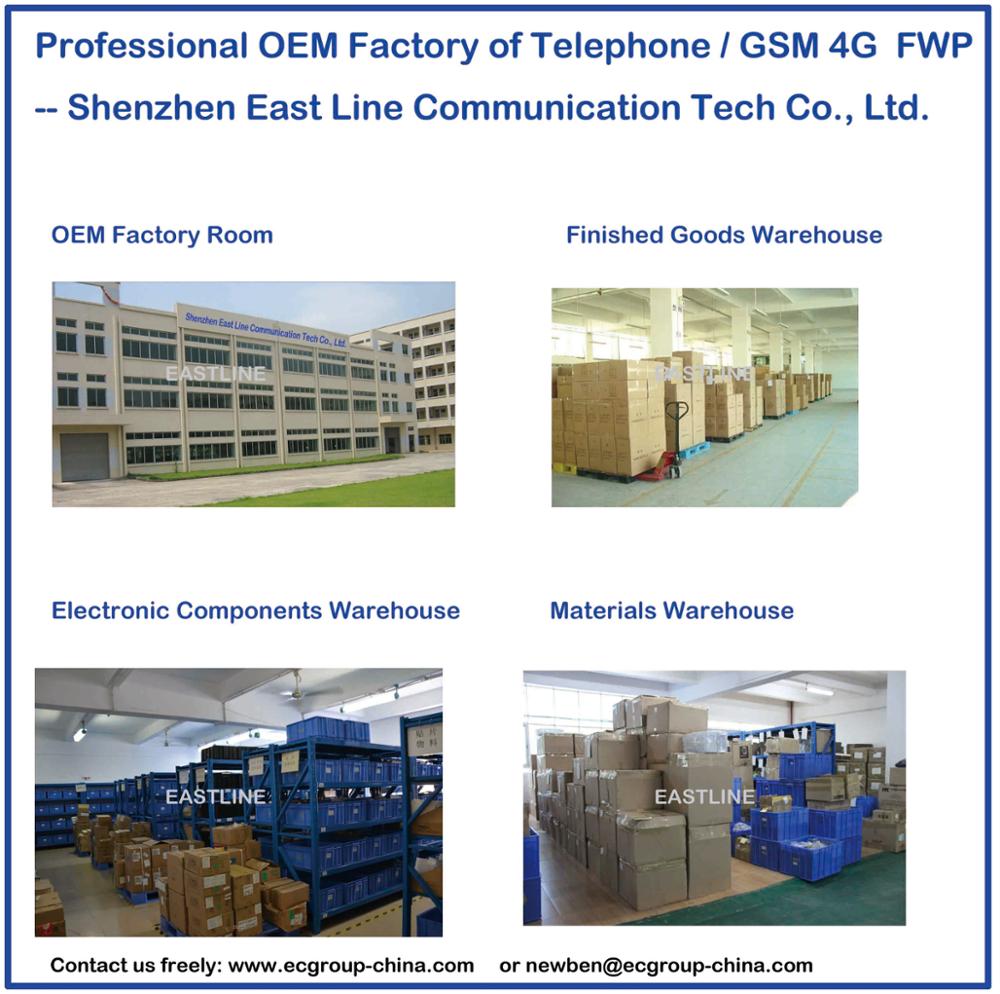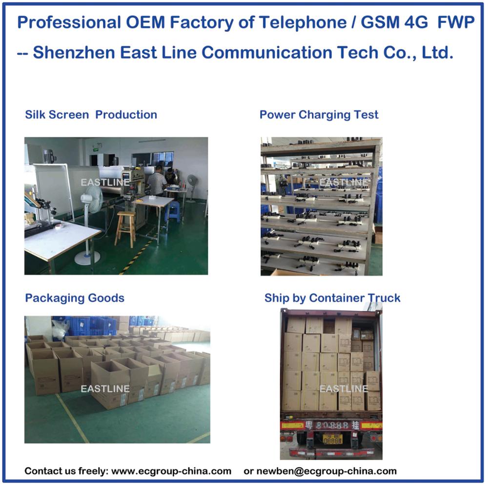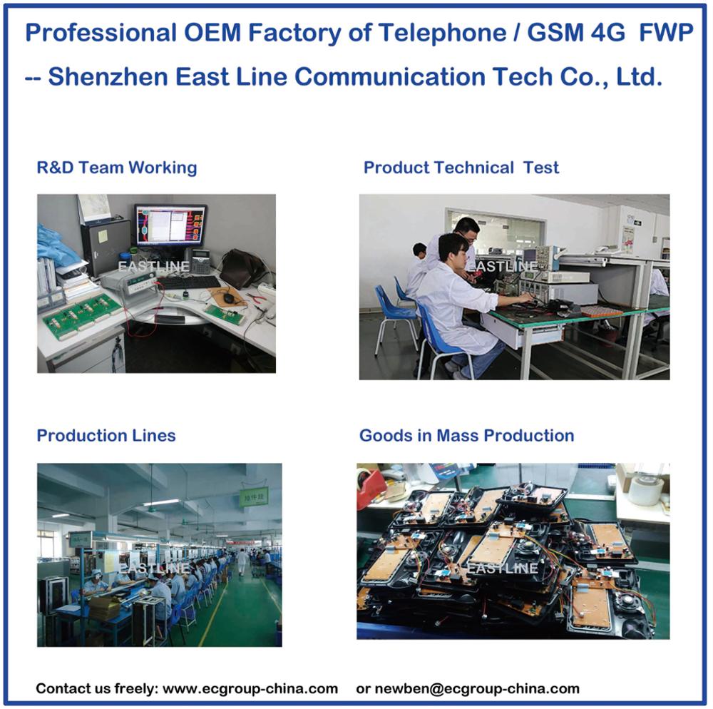 Shenzhen Eastline Communication Technology Co., Ltd. is a professional OEM manufacturer of corded/wired phones, GSM FWP/WCDMA 3G/LTE 4G SIM card fixed wireless phones, IP VoIP phones and DECT cordless phones. Our main products are as follows: