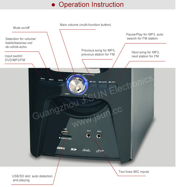 | support: | Compatible with USB / SD / MMC, FM, DVD, CD, PC, Laptop, TV, MP3, MP4, mobile phone, etc. |