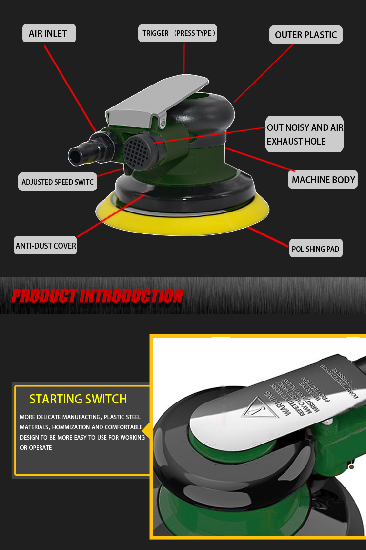 5" 5569 Low Vibration Random Central Non-Vacuum Orbital Sander Polishing Sanding Tool
