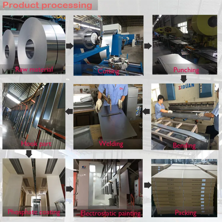 | (1) We have advanced professional production equipment, such as electronic CNC equipment, cutting and punching machines, CNC bending machines, spraying lines, spot welding machines, etc. |