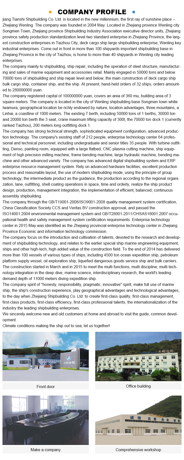 - Zhejiang Tianshi Shipbuilding Co., Ltd.