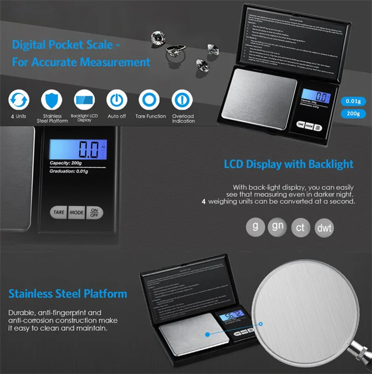 | Accuracy: | 0.01g; | Product Size: | 12*12*2cm; |