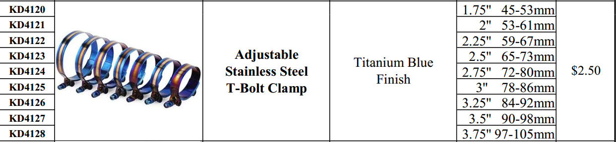 | Packaging Details: | Original Package 59-105MM 2.25-3.75 Inch Titanium Blue Finish Adjustable Stainless Steel T-Bolt Clip T-Bolt Hose Tube Wire Rope Clip; | car brand: | common; |