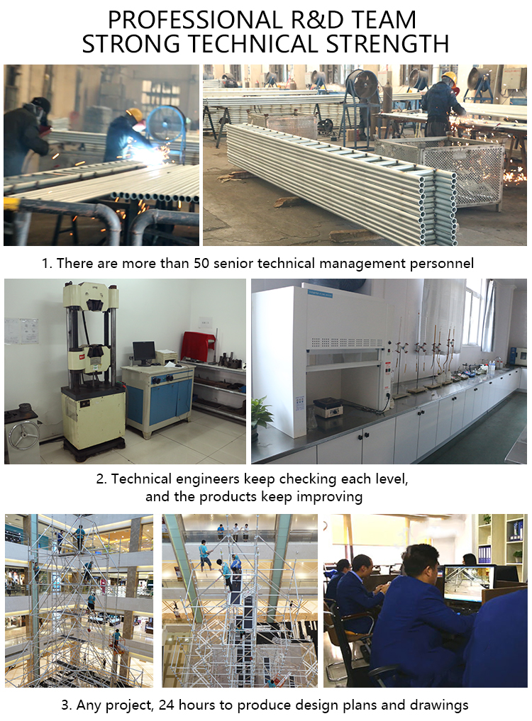 | Specification | Main tube: 42*2.0/1.8/2.2 mm; Inner tube: 42*2.0/1.5/1.8 mm or 25*1.5 mm and other frame scaffolding |