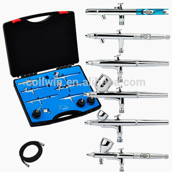 | 6 x air brushes 3 x gravity cups (3/4oz) 1 x air hose | 1 x Molded Plastic Storage Box