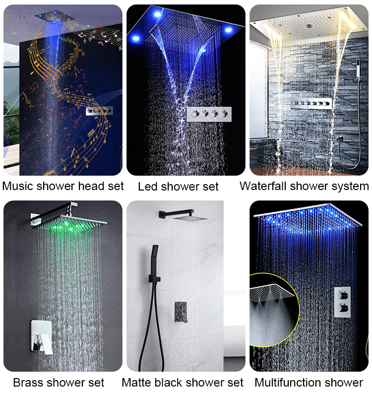 6 Pack Massage Shower Heads LED Shower Panel Thermostatic Shower Head Set Faucet Faucet Valve Bathroom Accessories Name T