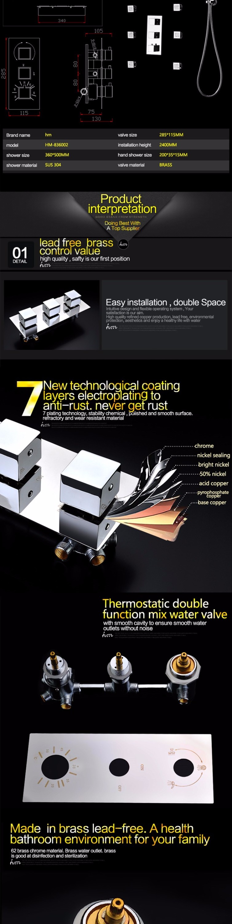 | model: | HM-836002 | Surface mounted shower faucet features: | no slider |