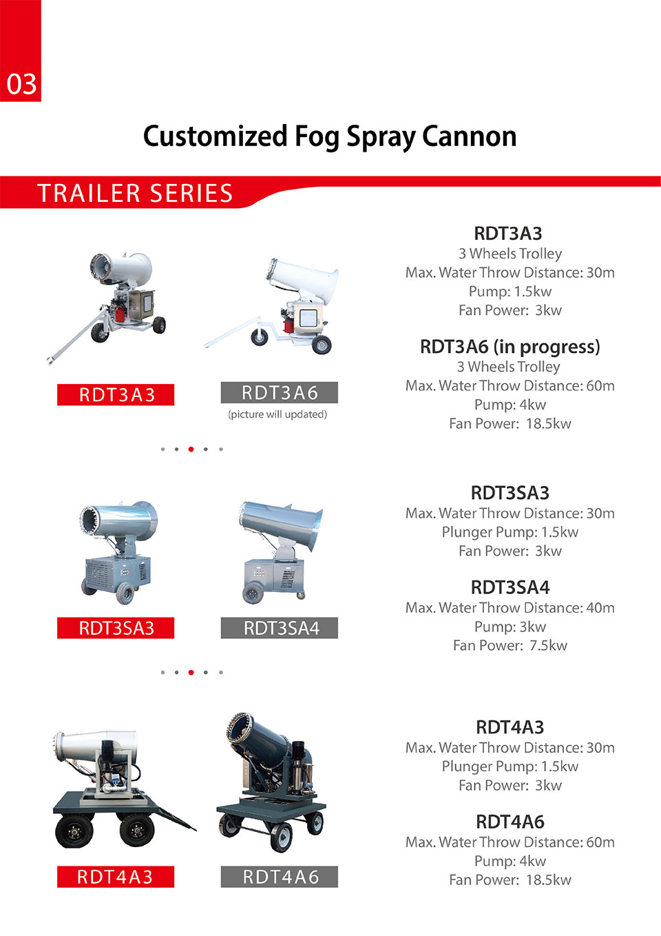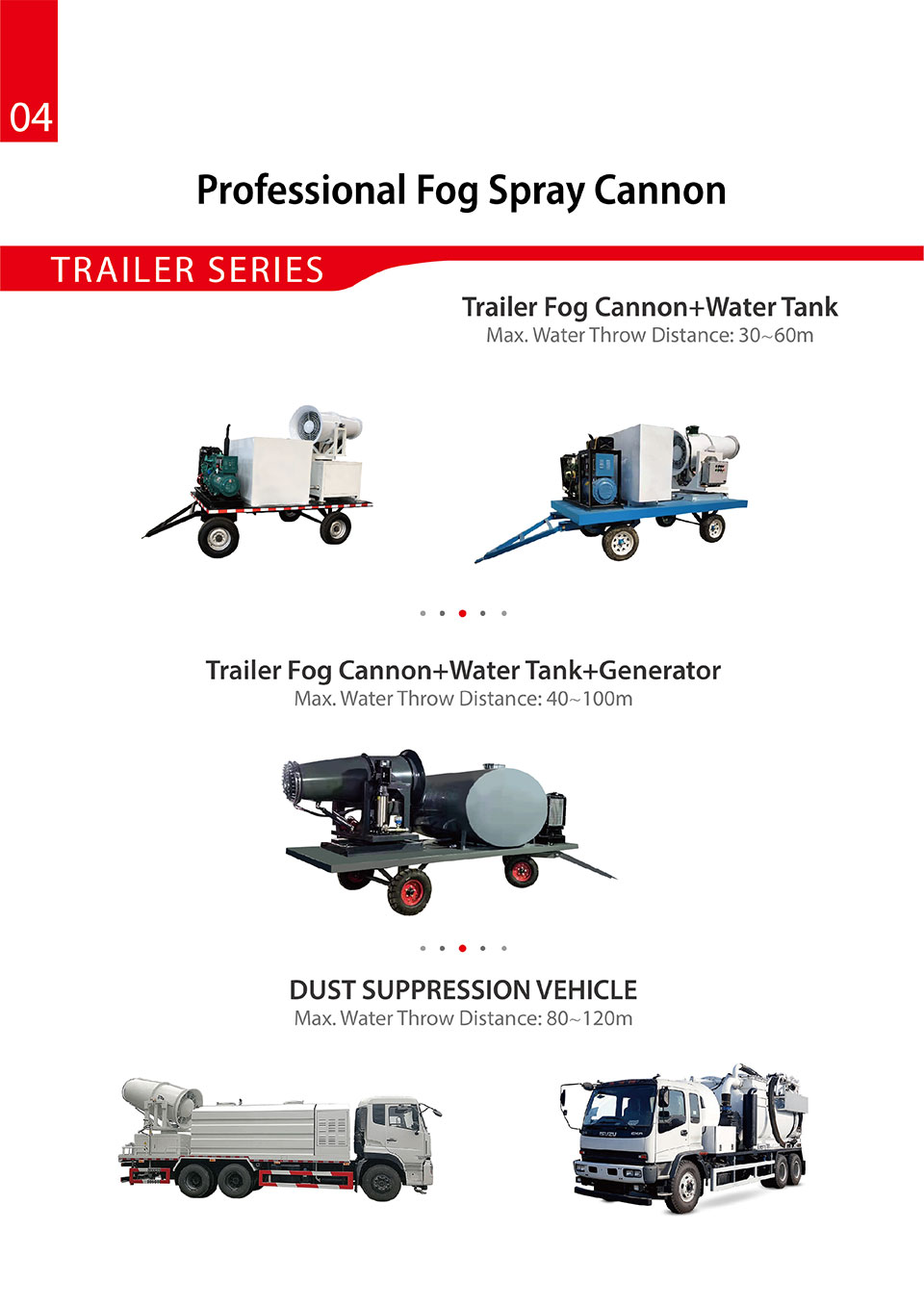 Fog cannon sprayer can be used in urban demolition, mining areas, thermal power plants, port terminals, urban air pollution, areas with excessive dust, metallurgy, chemical industry, coal, steel, construction, gardens, public places and other places to atomize dust and cool down.
