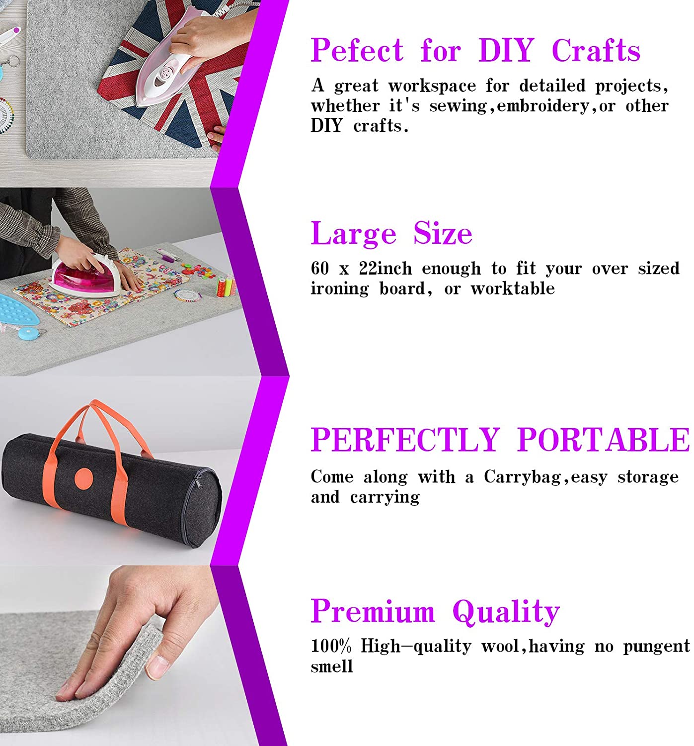 60X22 Inch Size 2021 Amazon Hot Sale 100% Healthy Premium New Zealand Wool Ironing Pad Pad with Quilting Box