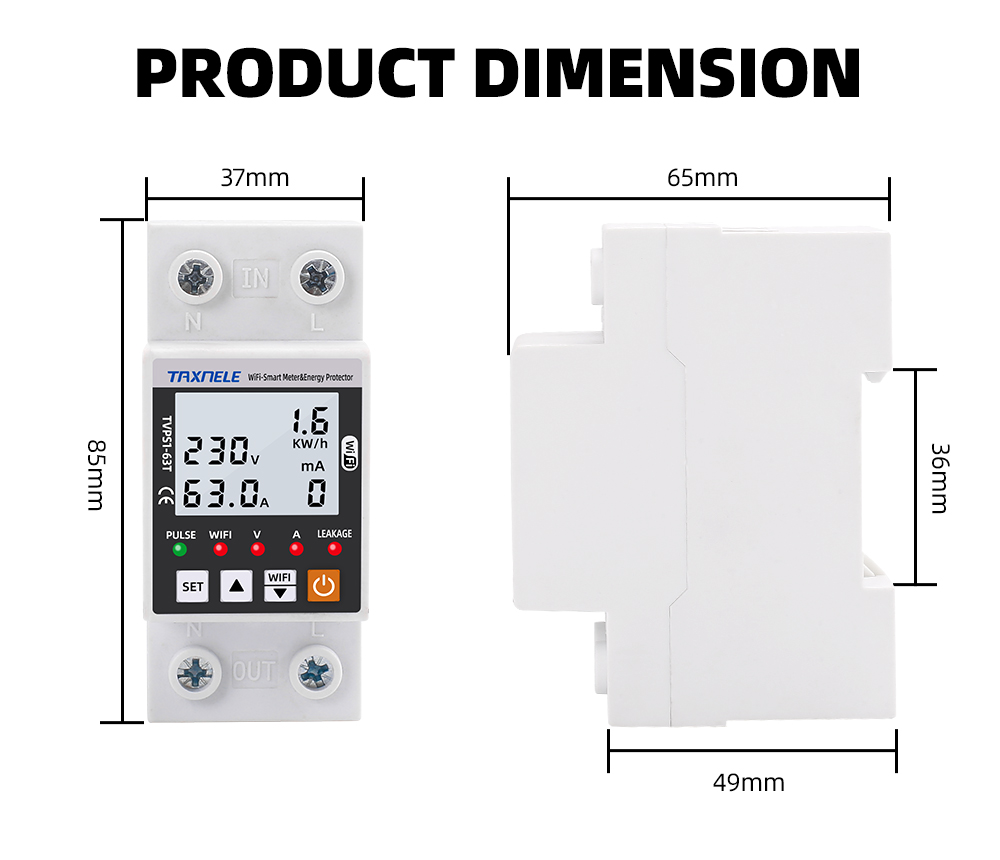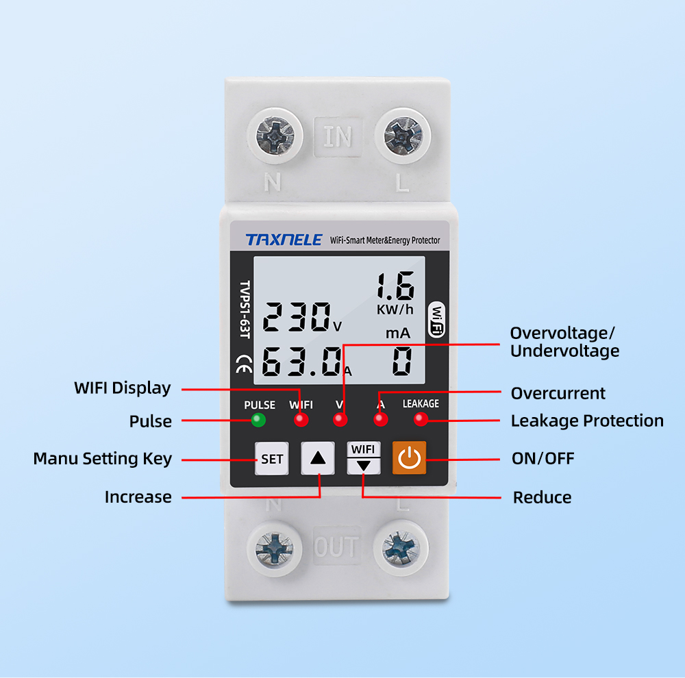 63A TUYA WiFi smart ground leakage over and under voltage protector relay device switch circuit breaker energy power kilowatt hour meter smart life