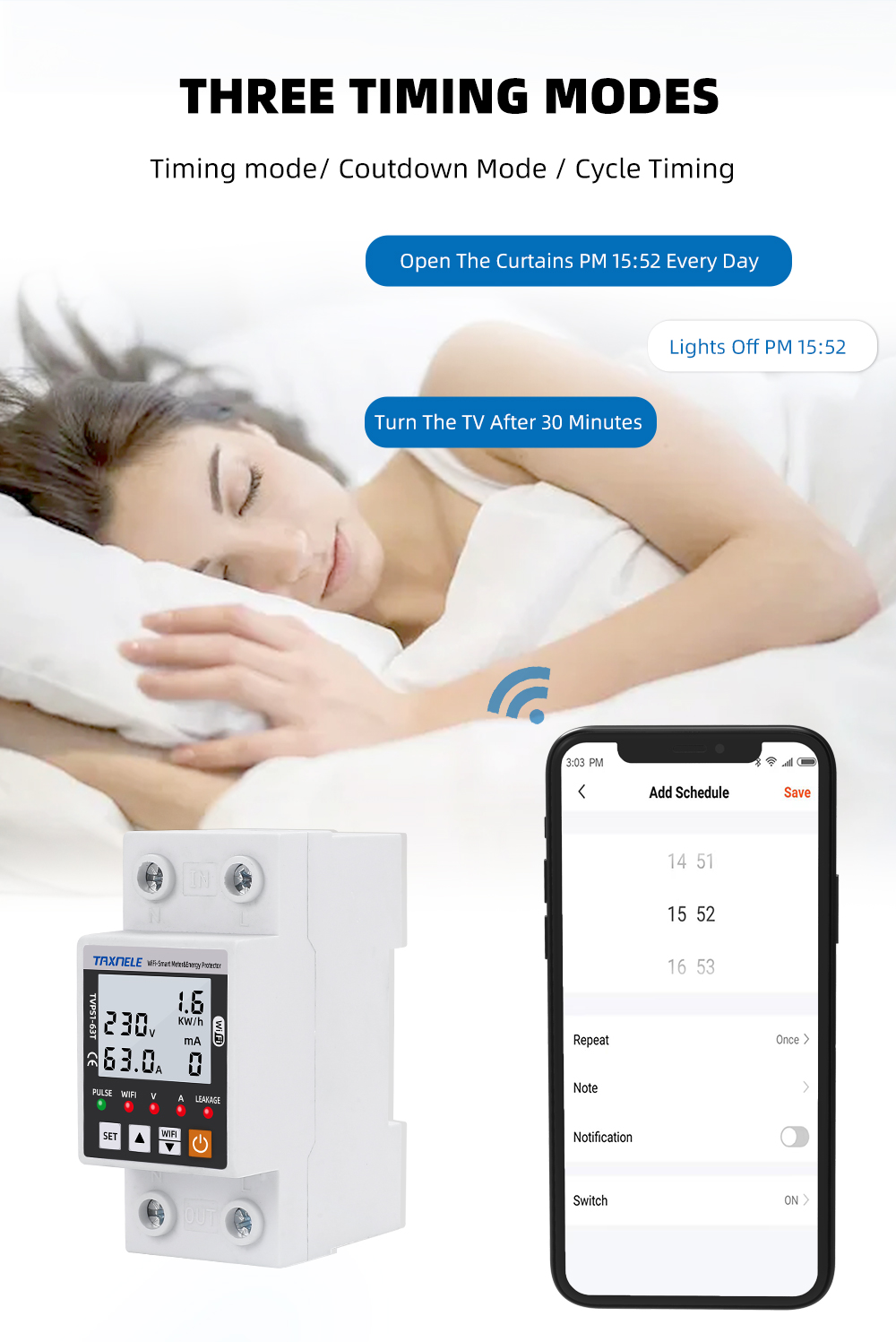 3. Overcurrent protection 1A-63A (adjustable) (default: 63A)