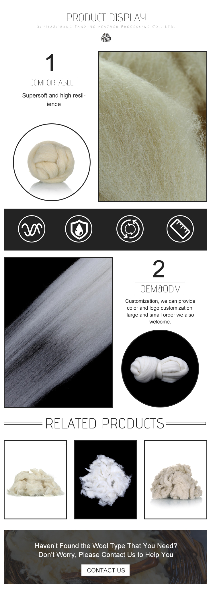 Tops are available for worsted and semi-worsted spinning depending on the fiber length. Our factory has been operating wool top business since 1998. 22 years of professional experience can help you choose the best top for your product. Open top is the best wool fiber for wool yarn.
