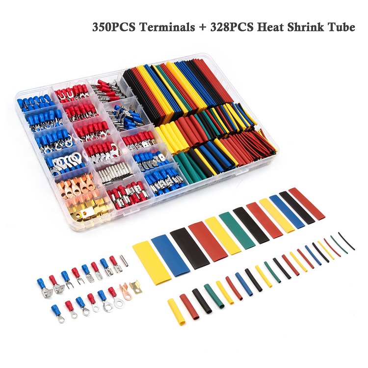 678 Pieces 2:1 Heat Shrink Tube Various Insulation Shrink Sleeve Kits Crimp Terminal Connector Assortment Kit