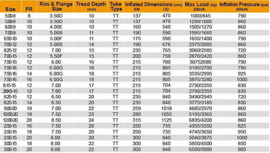 | pneumatic tire | 5.00-8,6.00-9,6.50-10,7.00-9,18x7-8,23x9-10,7.00-12,7.00-15,8.15-15(28*9-15),8.25-15,9.00-20 ETC. |