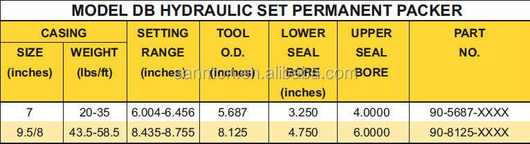The packer operates on a hydraulically fixed anchor bolt seal formed by left-hand threads on the bolt at the top of the packer and set by applied tubing pressure. DB packers require some type of temporary plugging device, such as shear plugs or cable plugs near the end of the tubing.