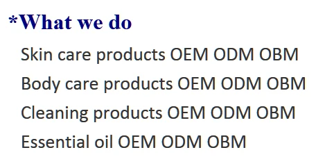 You can tell us your requirements on packing, ingredients, functions, fragrance or give us your samples, we will manufacture the good quality products as your requirements and with your own label on.