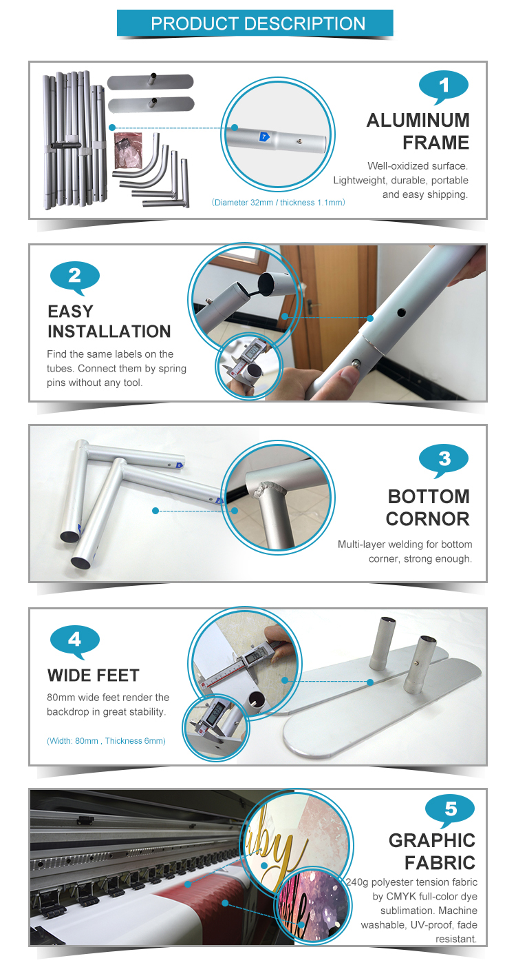 | payment terms: | L/C, D/P, D/P, T/T | product name: | 10 x 8 Tube Portable Display Wall Wedding Backdrop Stand |