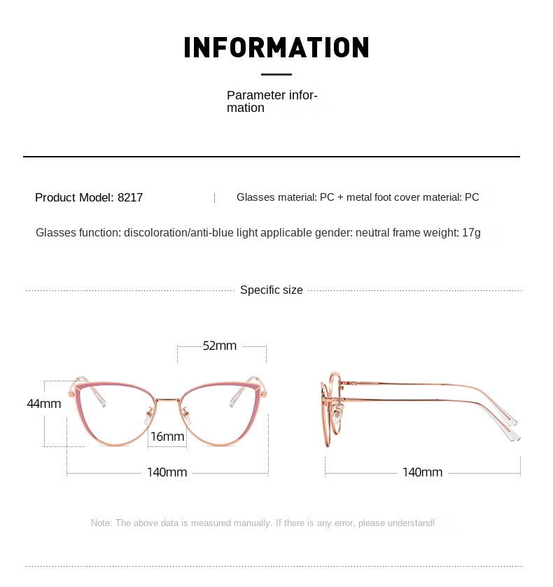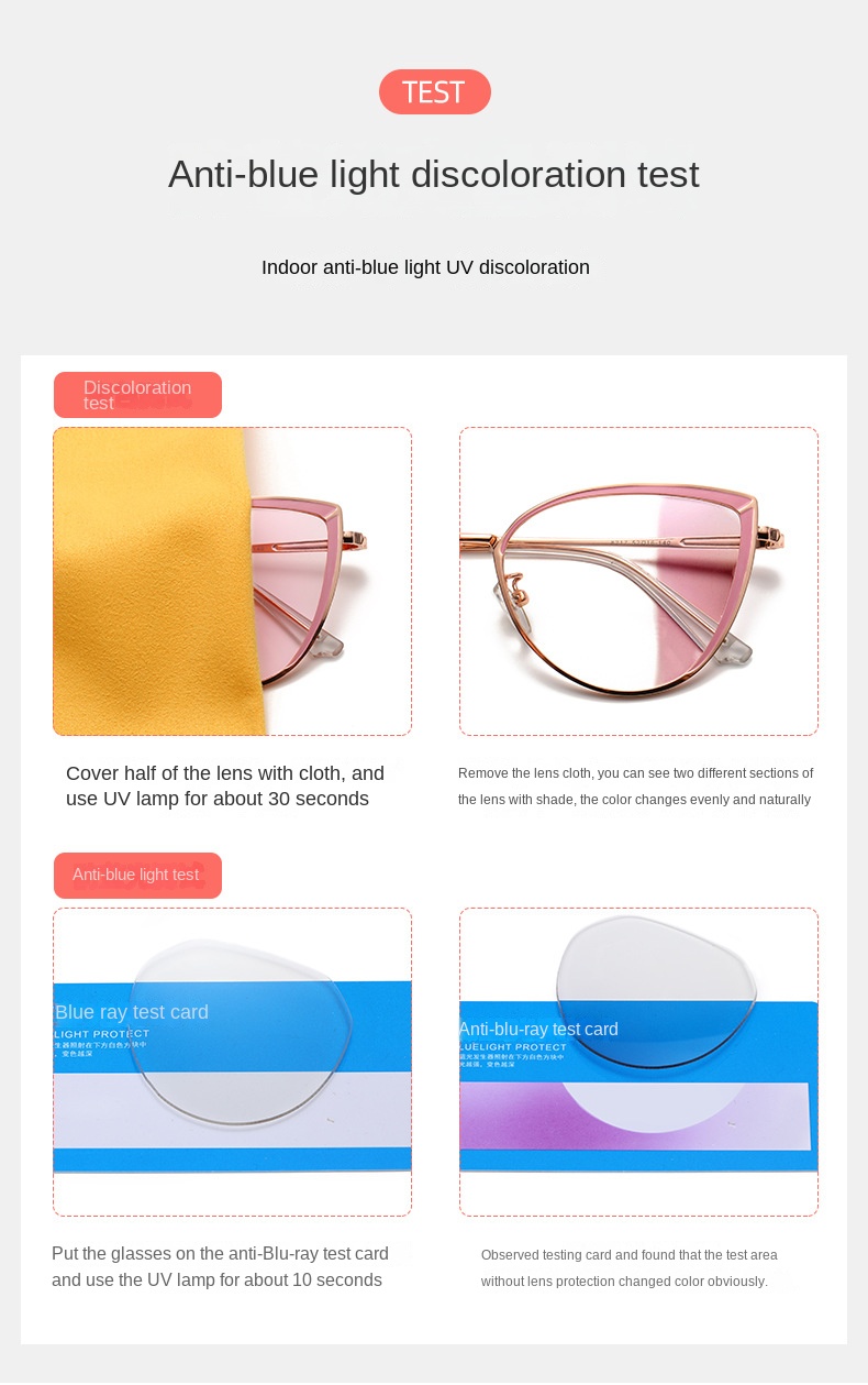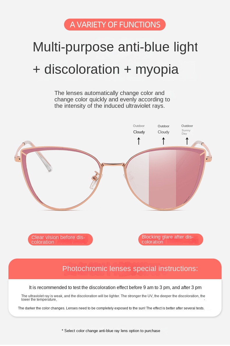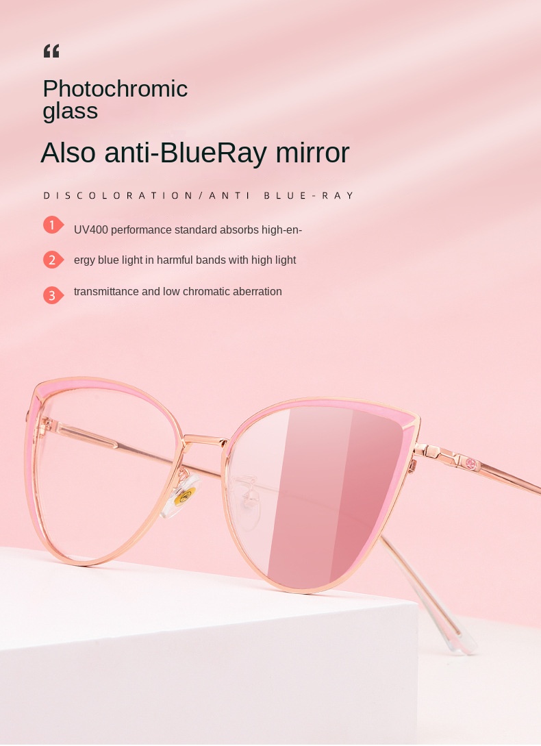 | product name | Women's anti-blue light discoloration cat-eye fashion metal frame anti-eye fatigue glasses |