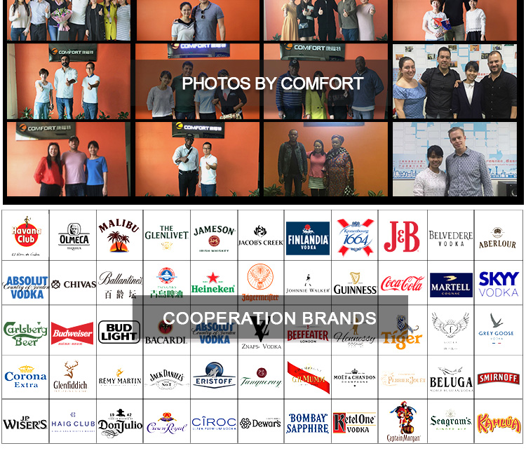 Johnnie Walker, Chivas Regal, Ballantine's, Hennessy, Remy Martin, Heineken, Carlsberg, Moetchandon, Martell, Ciroc, Armand de brignac,gray goose,J&B, Ballantine's, Smirnoff,