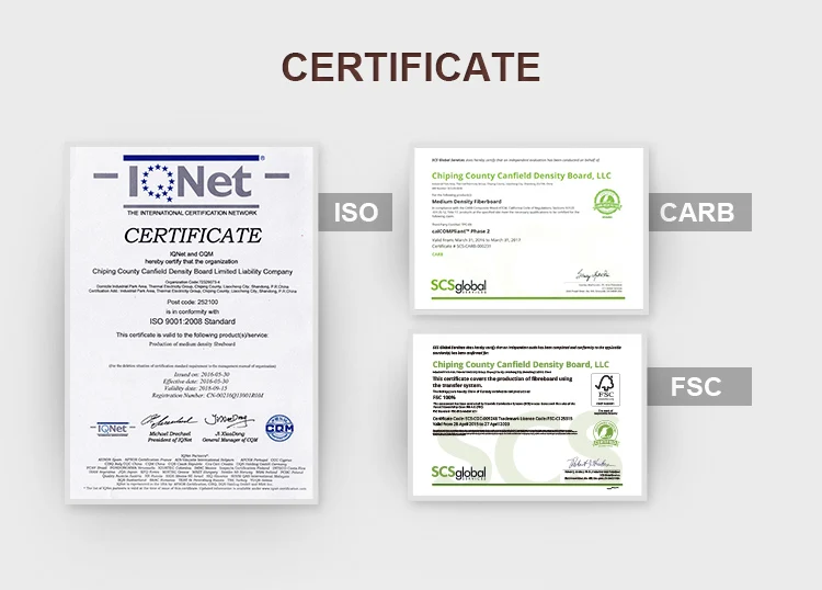 | Basic core material | White or green MDF/HDF. Density range: 700KG/M3-850KG/M3 |