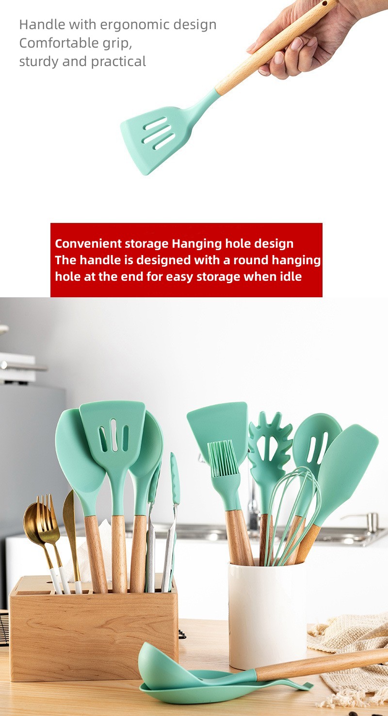 9/10/12 Pieces Silicone Cookware Set Nonstick Spatula Spatula Wooden Handle Cooking Tool Set with Storage Box Kitchen Tools