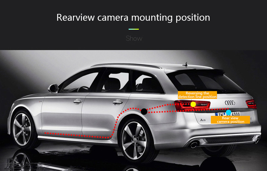 When the car is in reverse gear, the car's DVR GPS automatically switches to a reversing camera image view with stop lines.
