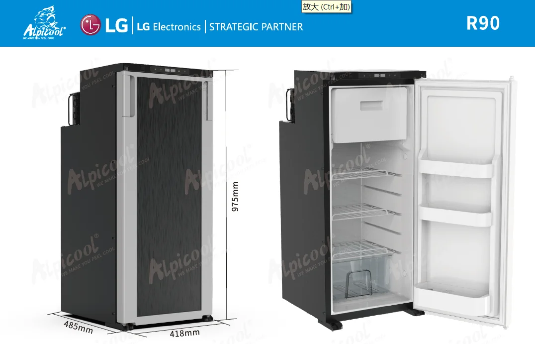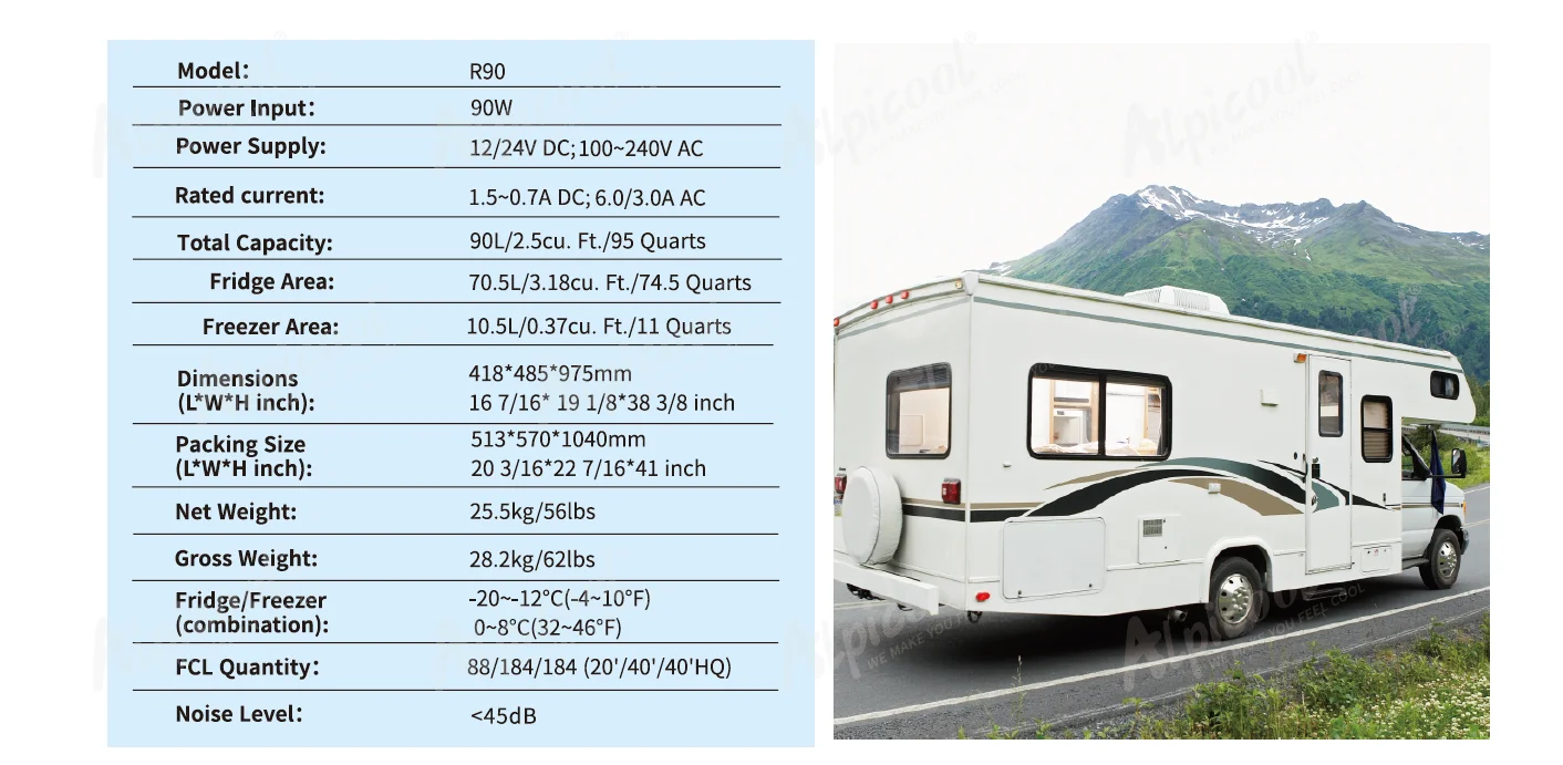 90L 12V RV Compressor Fridge Refrigerator