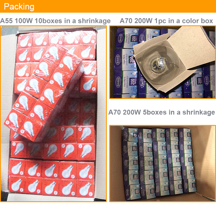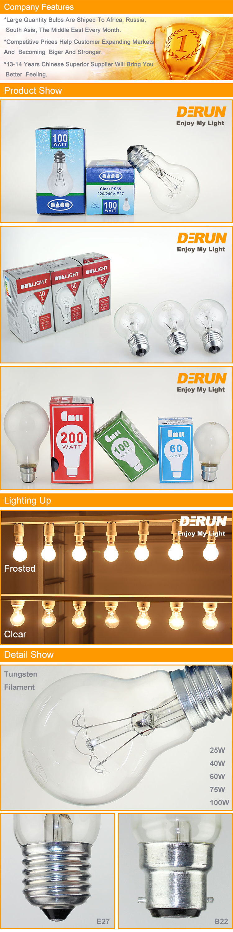 A55 40w 60w 75W 100W E27 B22 transparent incandescent bulb lamp manufacturer luces foco incandescent lamp, INC-A BULB