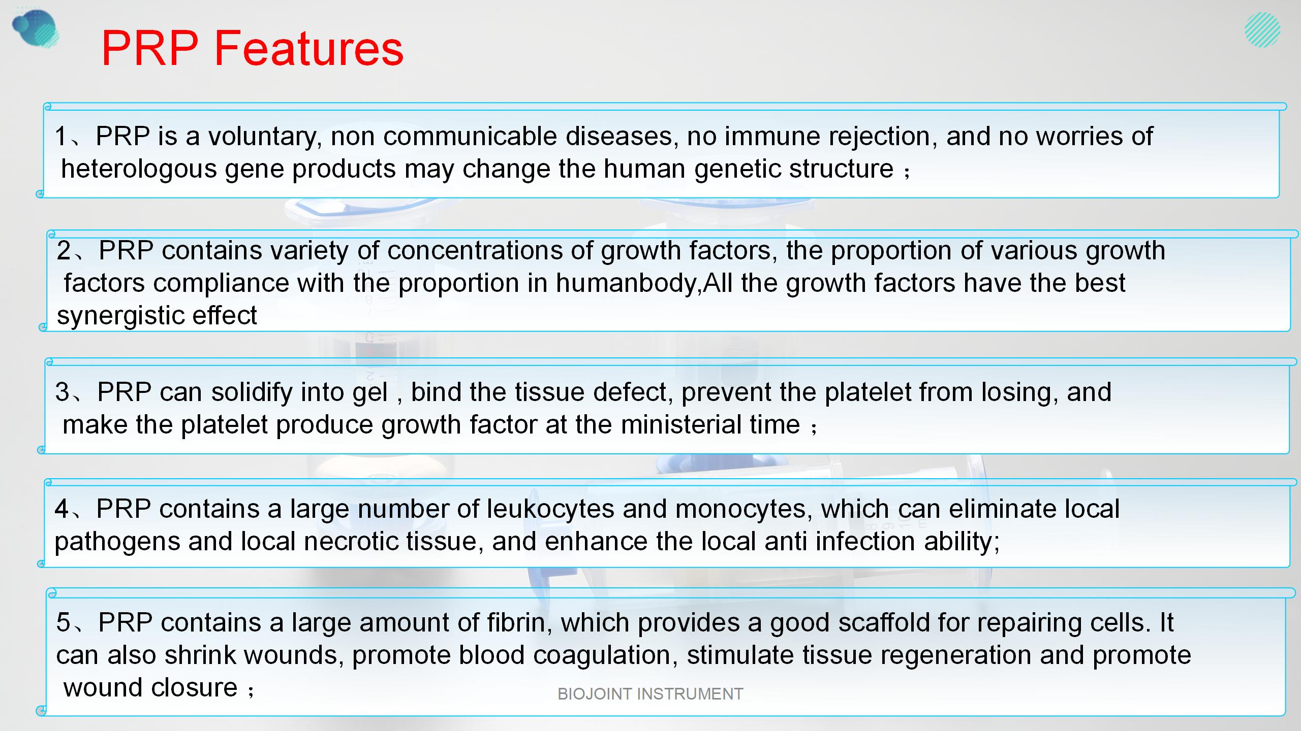 Requires less blood than other PRP systems, reducing time and resources required for administration