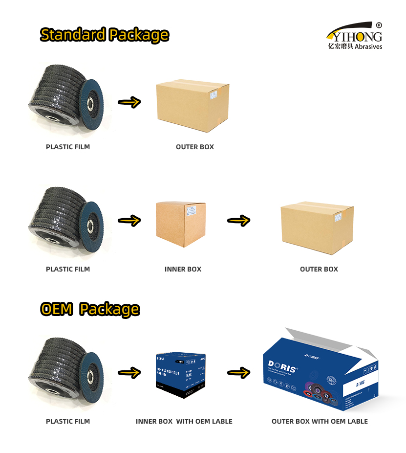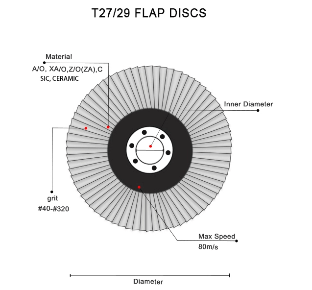 Granularity: 36~600#; Flaps: 45, 72, 80, 90 flaps or according to customer design; Common sizes: 110, 115, 125, 150, 180mm in diameter. |