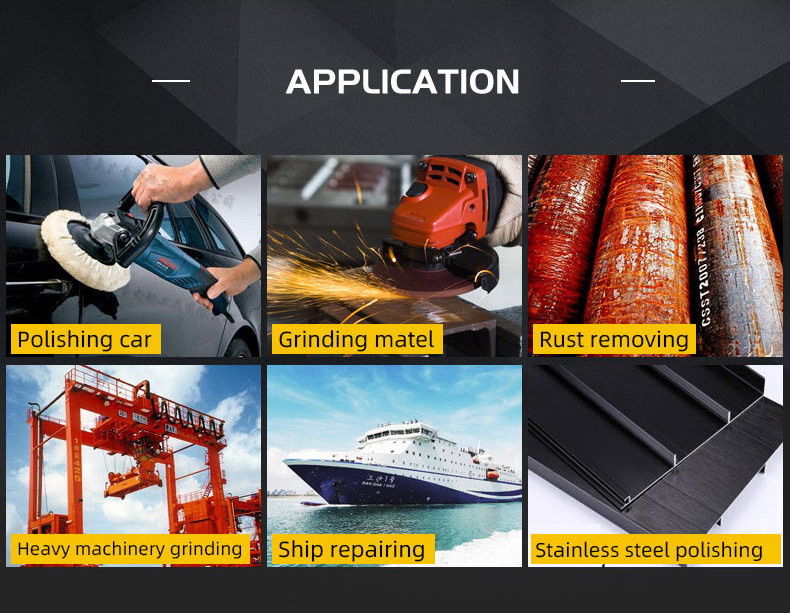 Alumina: suitable for grinding and polishing, carbon steel metal, wood, metal, iron, welding rod, etc. |