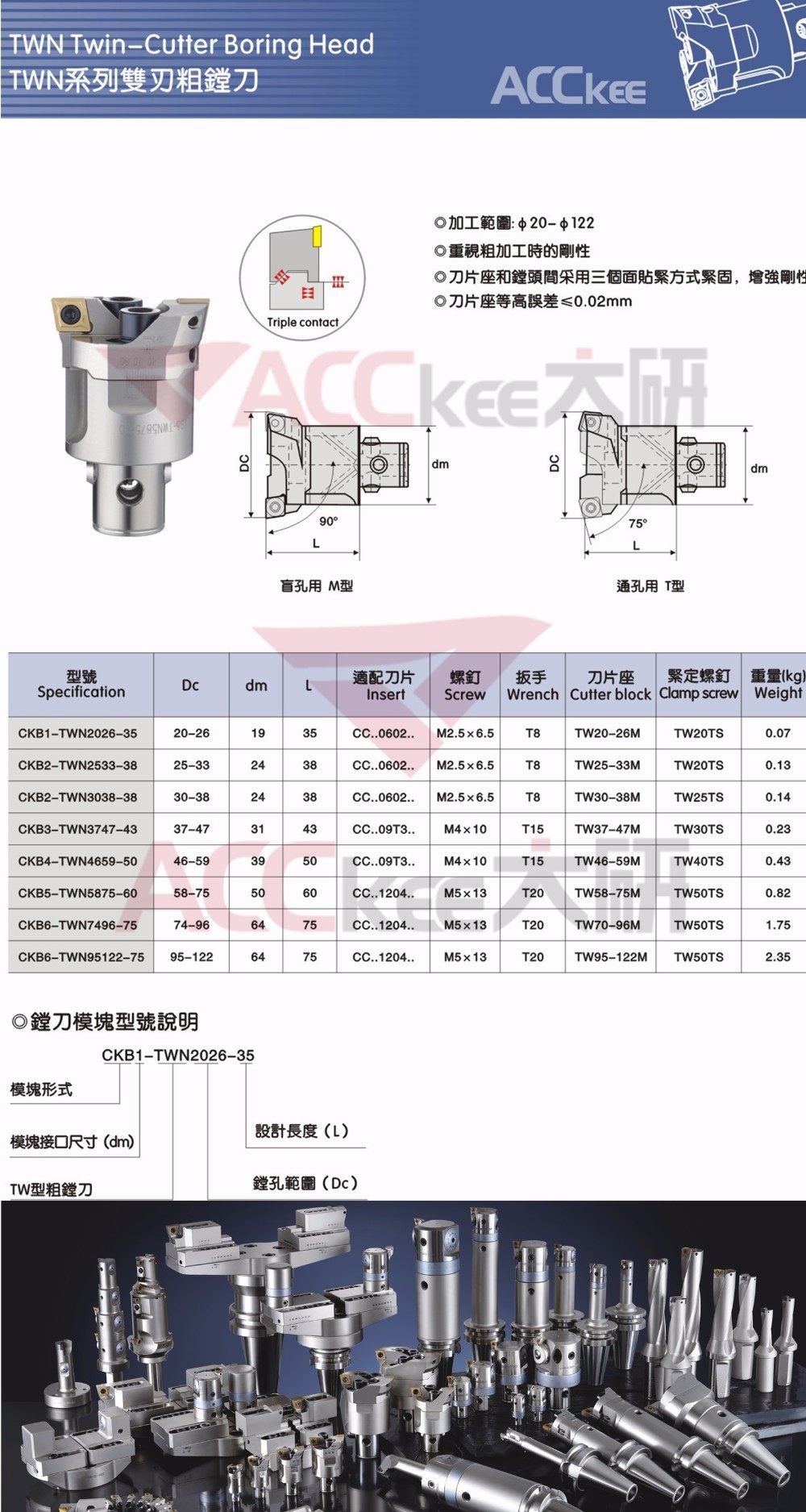 AccKee high-precision indexable double-knife rough machining miniature automatic boring head with CKB4-twn4154-50