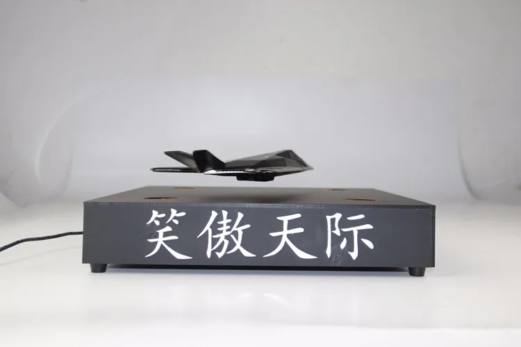 This is a acrylic display material magnetic floating bottom display device. The model can fly in air and the 360 degree automatic rotating at the same time.