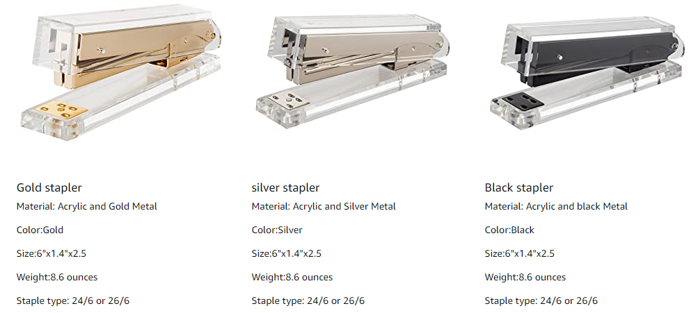Acrylic Gold Office Supplies Set Acrylic Stapler Tape Dispenser Stapler Remover Table Accessories
