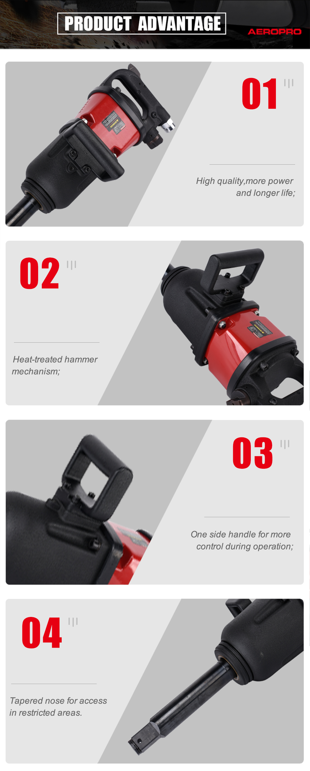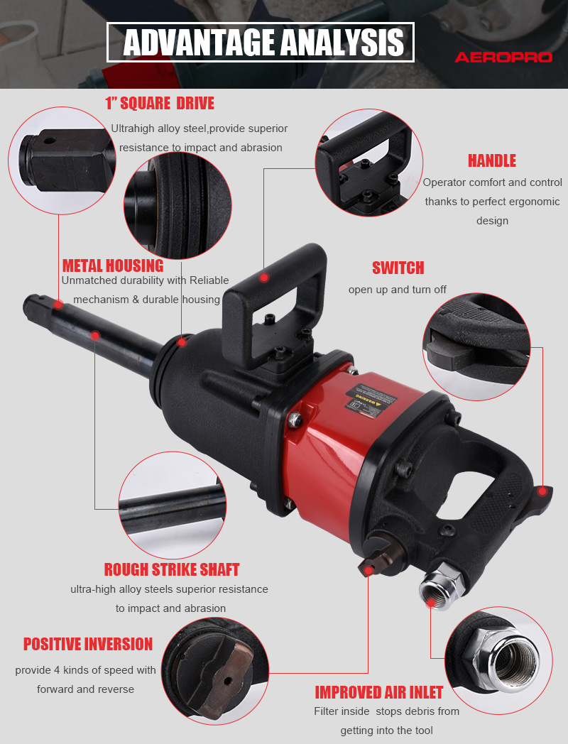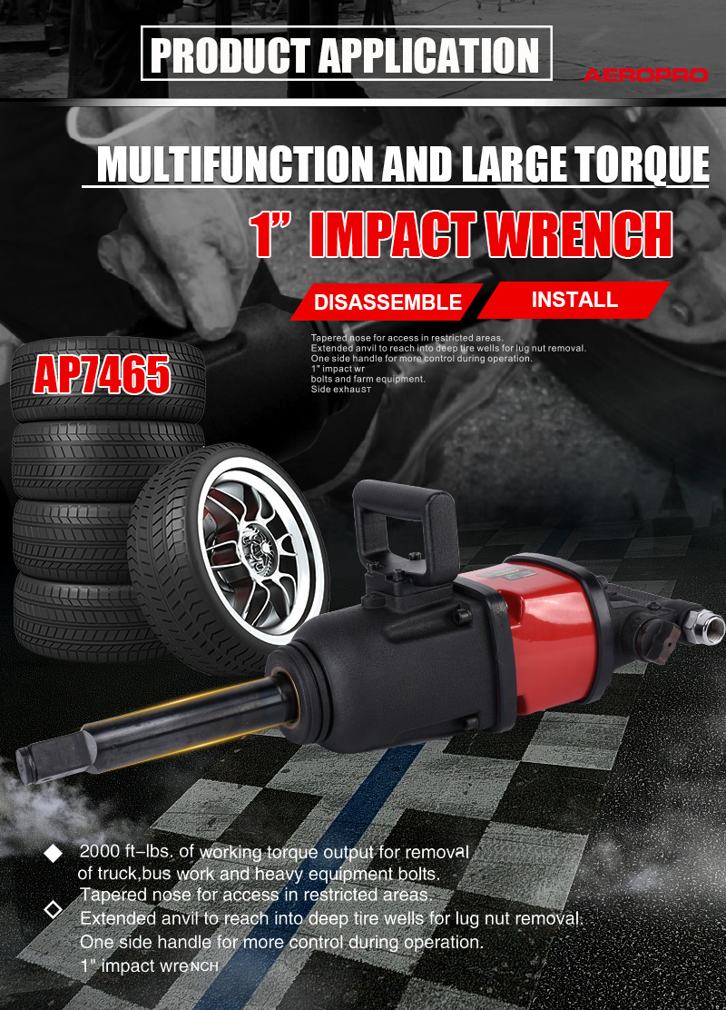Aeropro Air Tools Heavy Duty AP7465 1 Inch 2700 Nm Pneumatic Impact Wrench For Truck Tire Repair