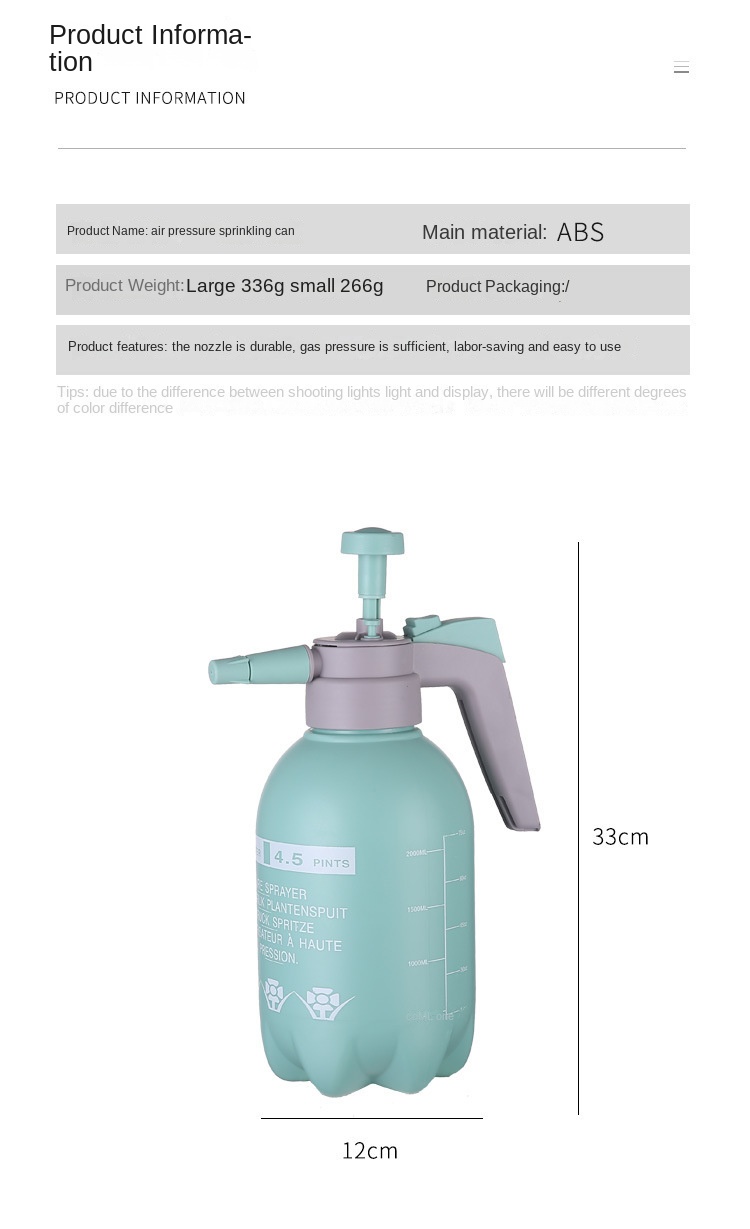 | Material | ABS | style | 1L Explosion Proof Spray Bottle Mix Color |