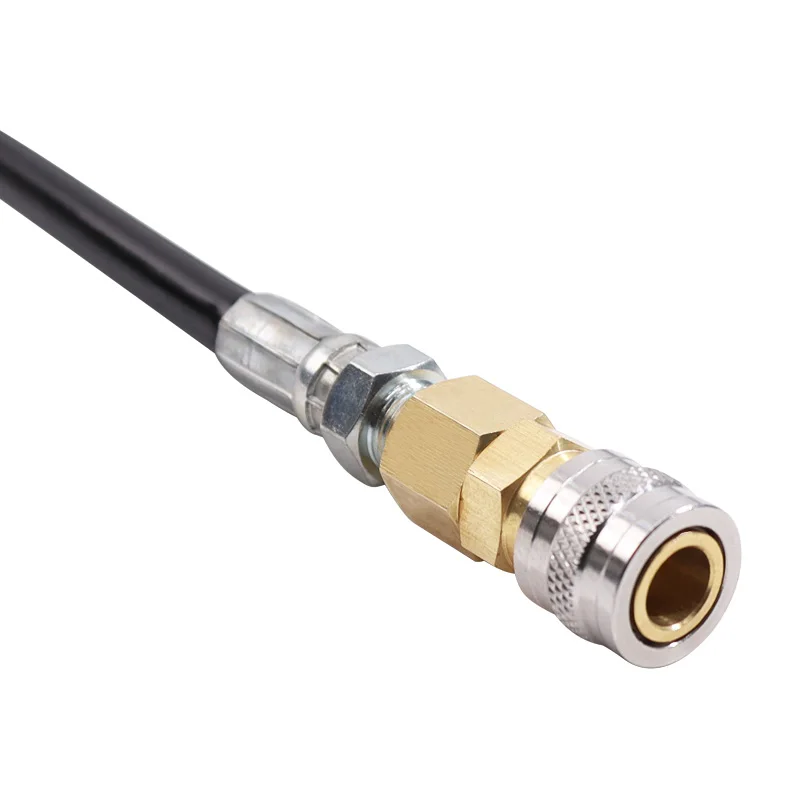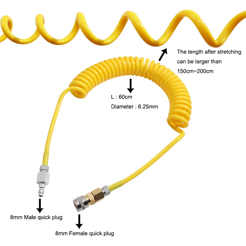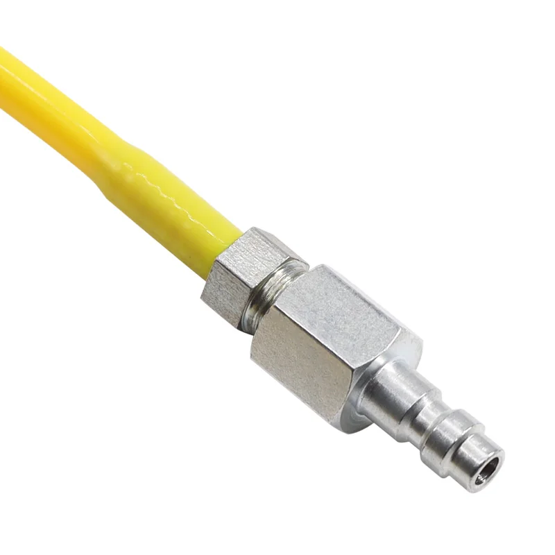 The Black Straight Hose Length: 40"(Max line pressure 200 psi,must use on HPA or SLP tank after regulating to under 200psi.) The Yellow Hose:(Max line pressure 15Bar)
