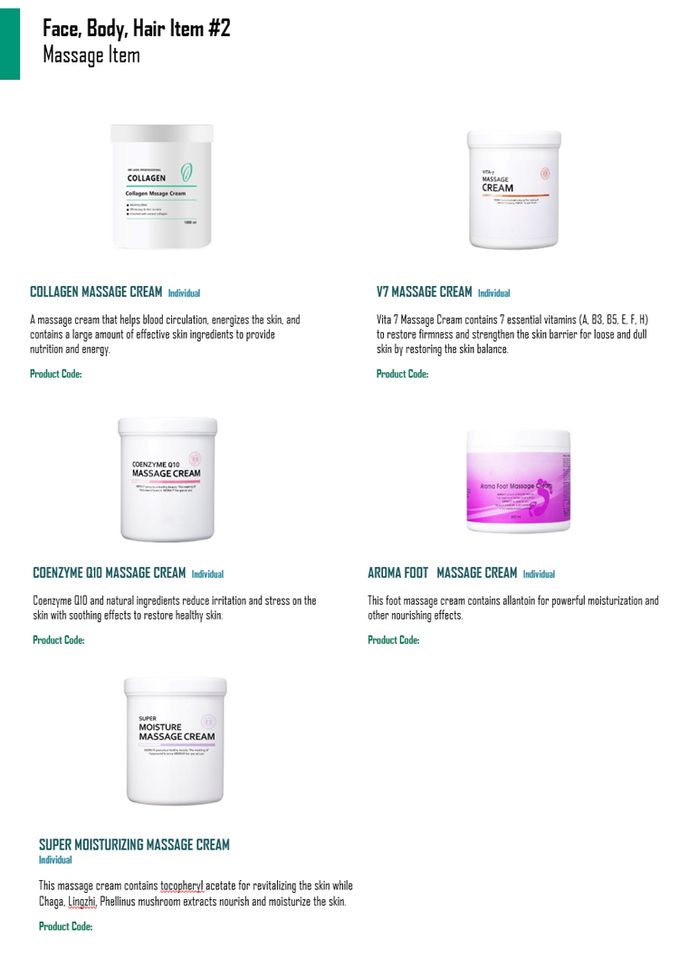 This massage cream contains Tocopherol Acetate to revitalize the skin, while Chaga, Ganoderma and Phellinus Mushroom extracts nourish and hydrate the skin.