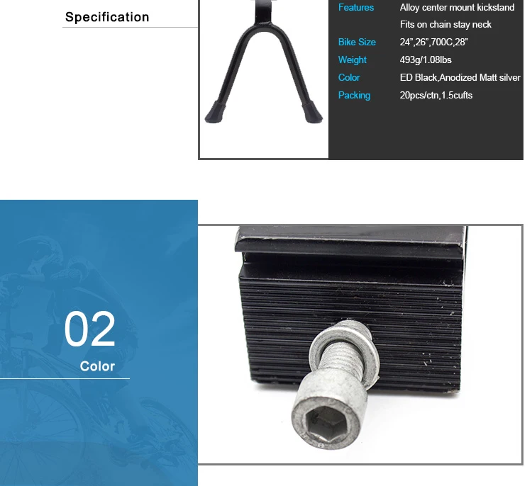 | Feature: | Alloy center mount kickstand Fits on chain stay neck; |