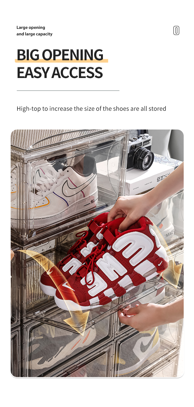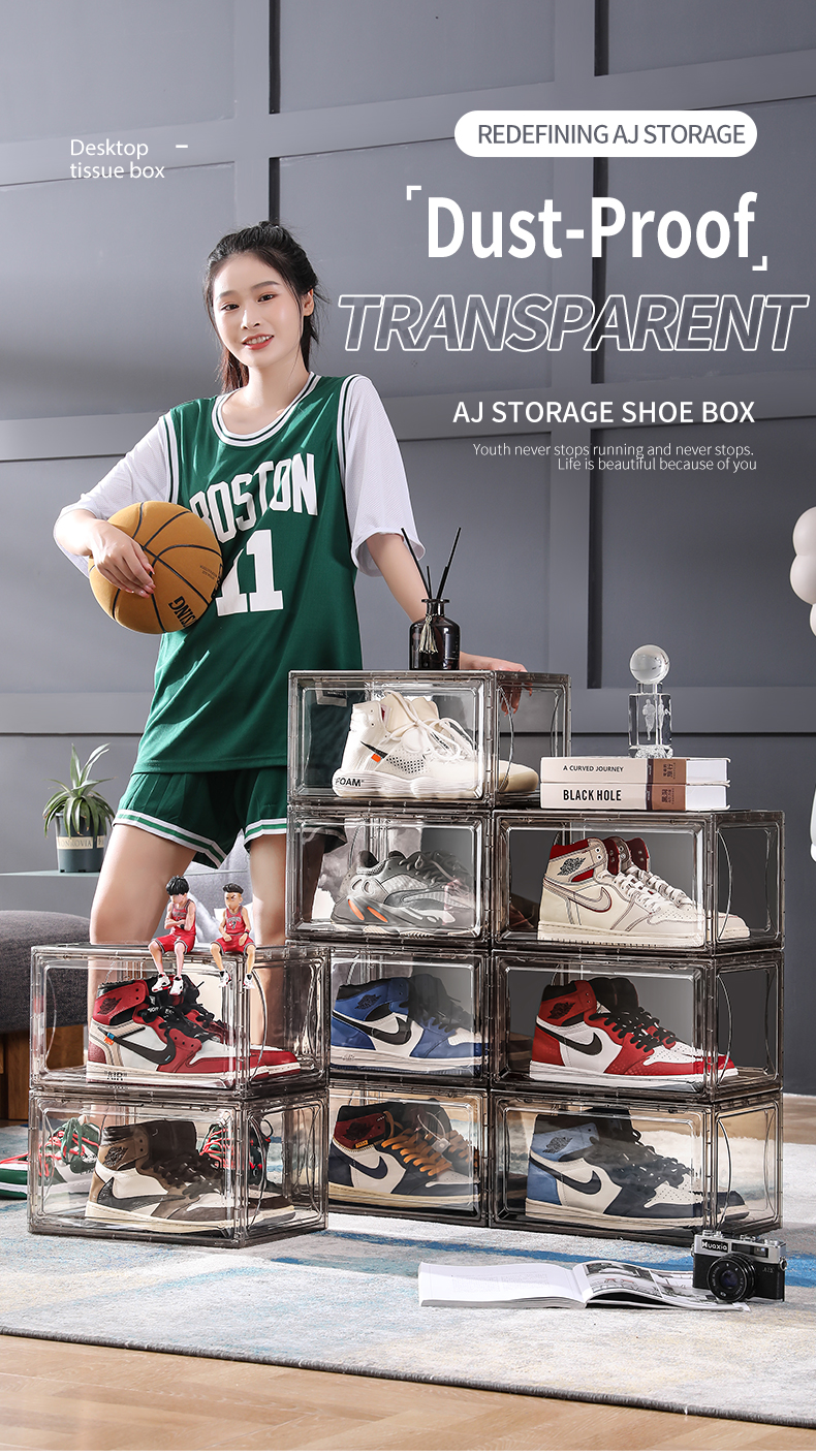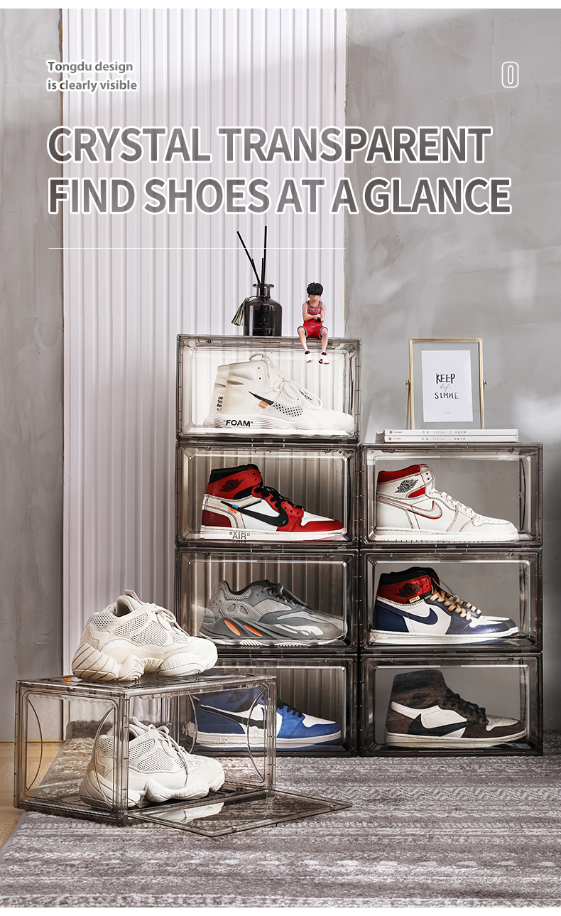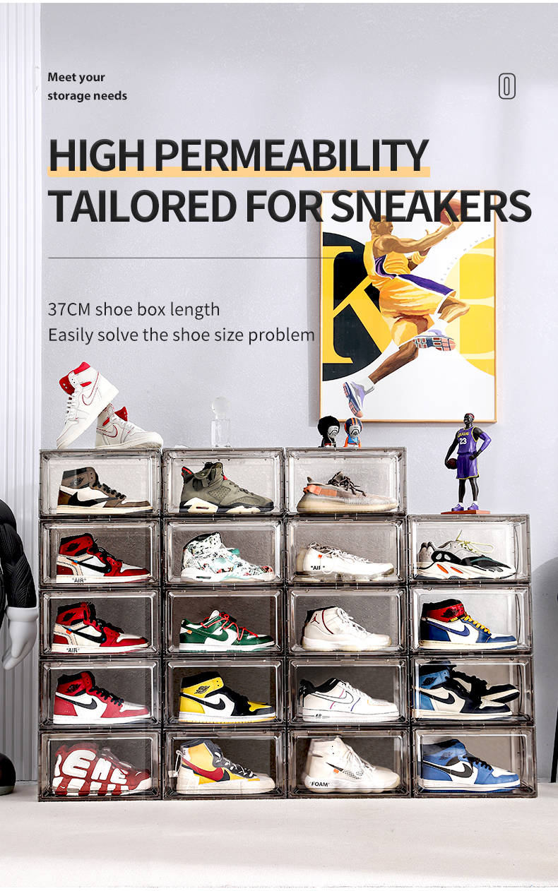 Amazon Pop Free Sample Side Door Stable Stacking Custom Logo OEM Jumbo Black Sneakers Plastic Black Shoe Box