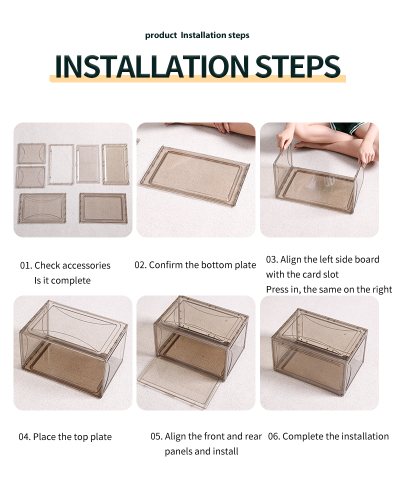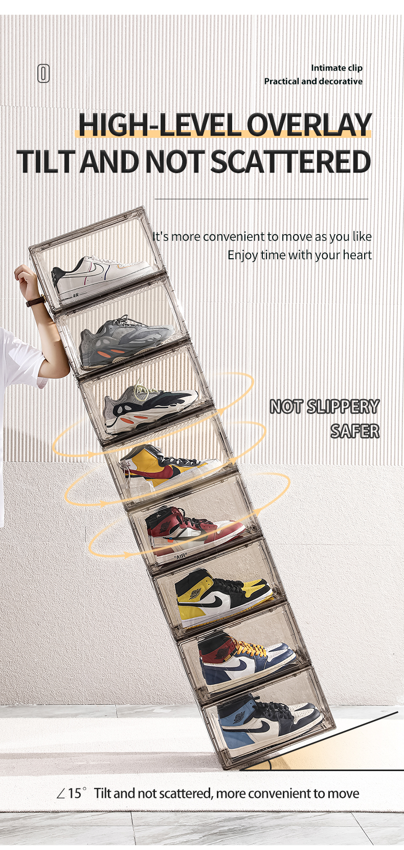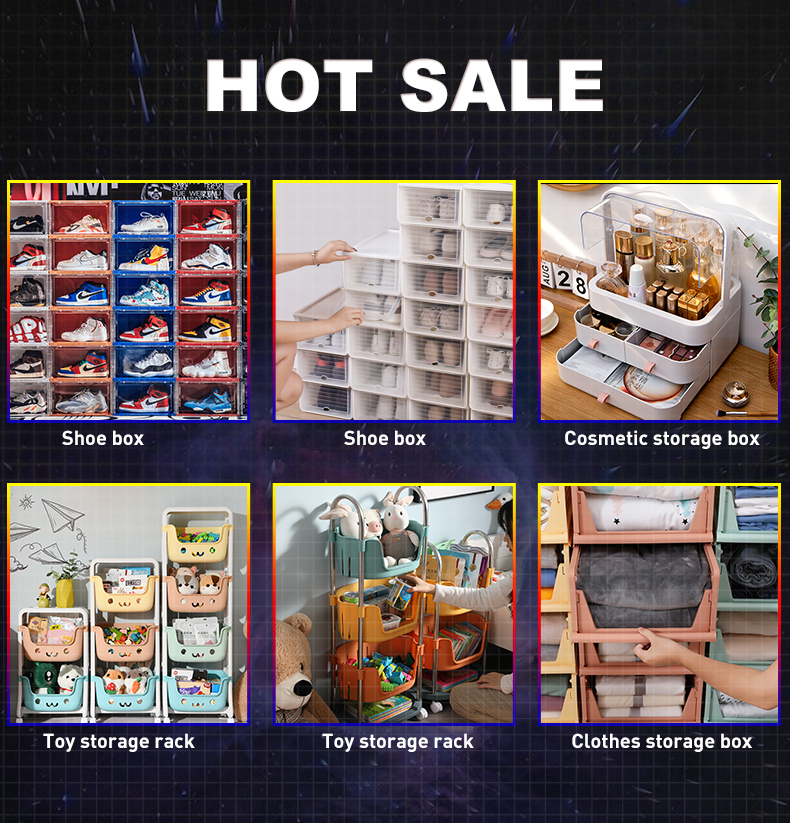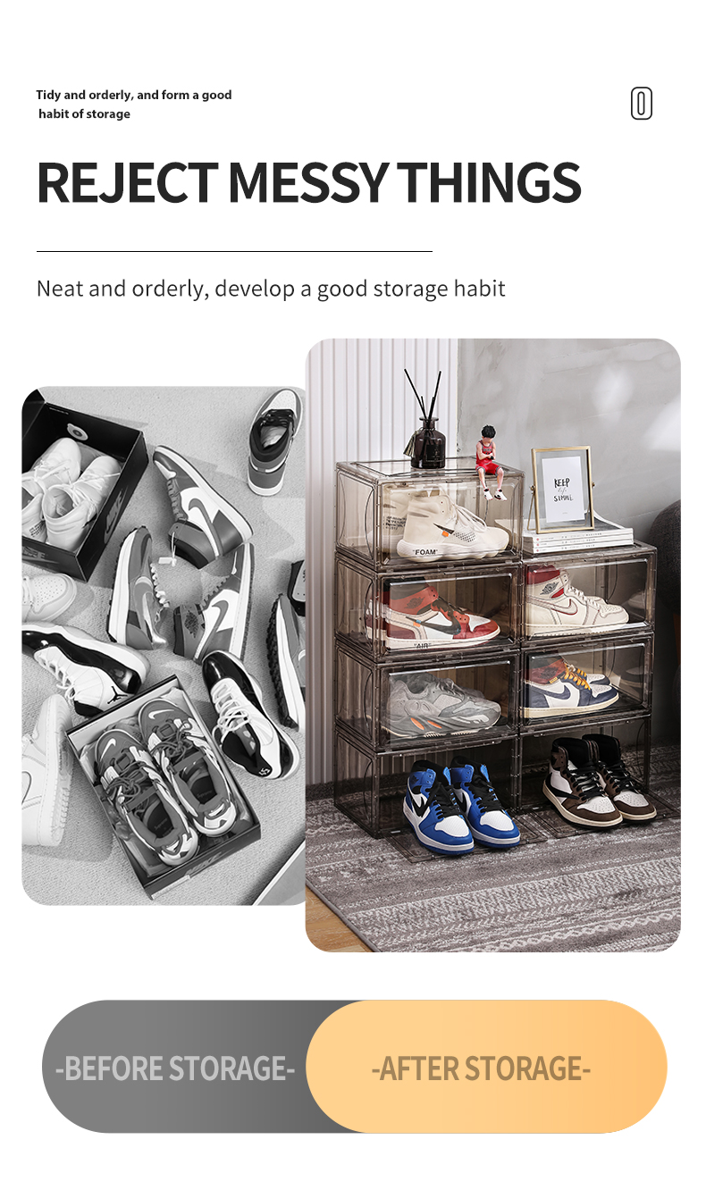 Amazon Pop Free Sample Side Door Stable Stacking Custom Logo OEM Jumbo Black Sneakers Plastic Black Shoe Box