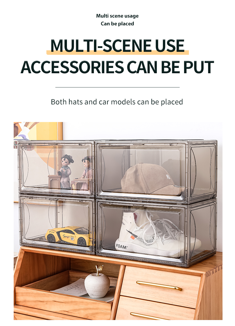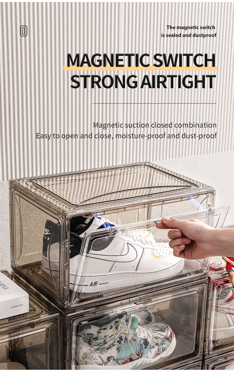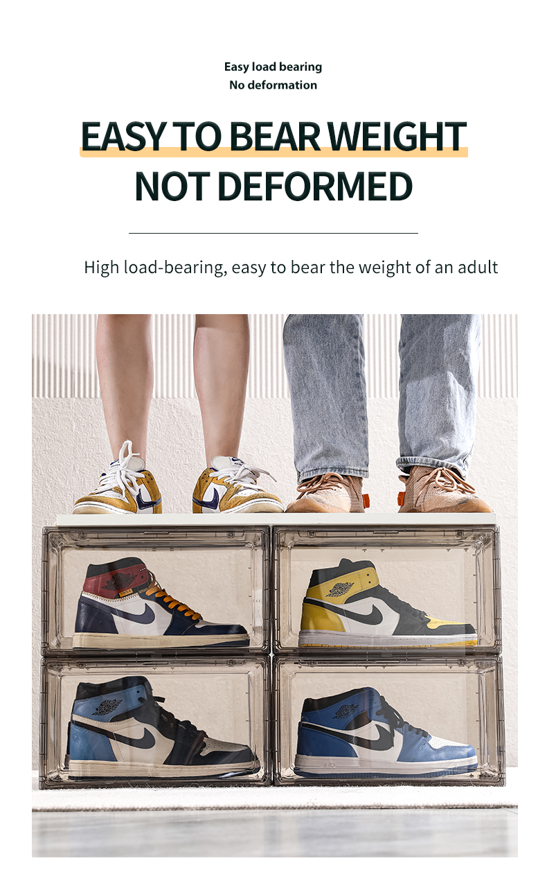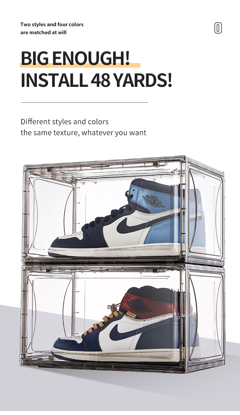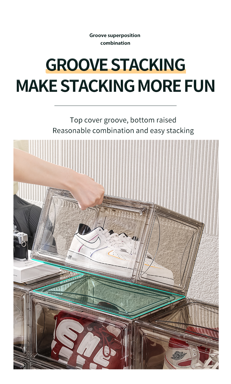 Amazon Popular Free Sample Side Door Stable Stacking Custom Logo OEM Jumbo Black Sneakers Plastic Black Shoe Box