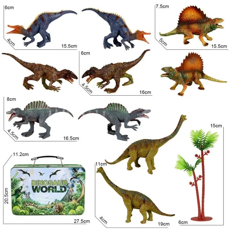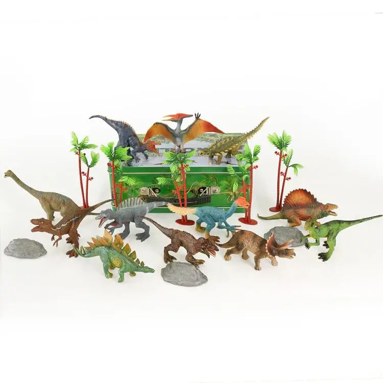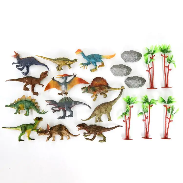 12pcs 7 inches dinosaur with tree and rock in the tiny box