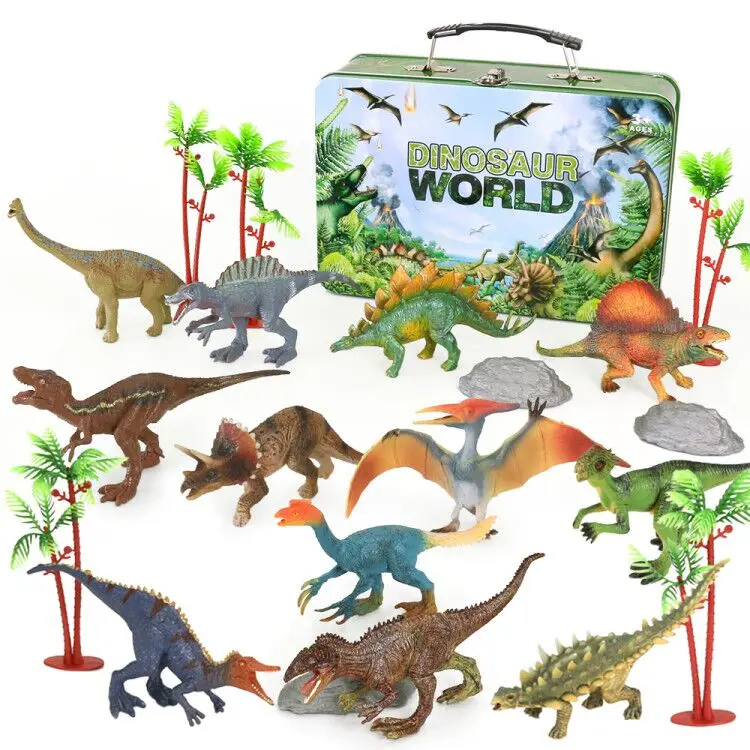 Amazon hot 2021 dinosaurio juguetes 12pcs mixed kids gift solid 7' PVC plastic dinosaur toy in tiny protable box