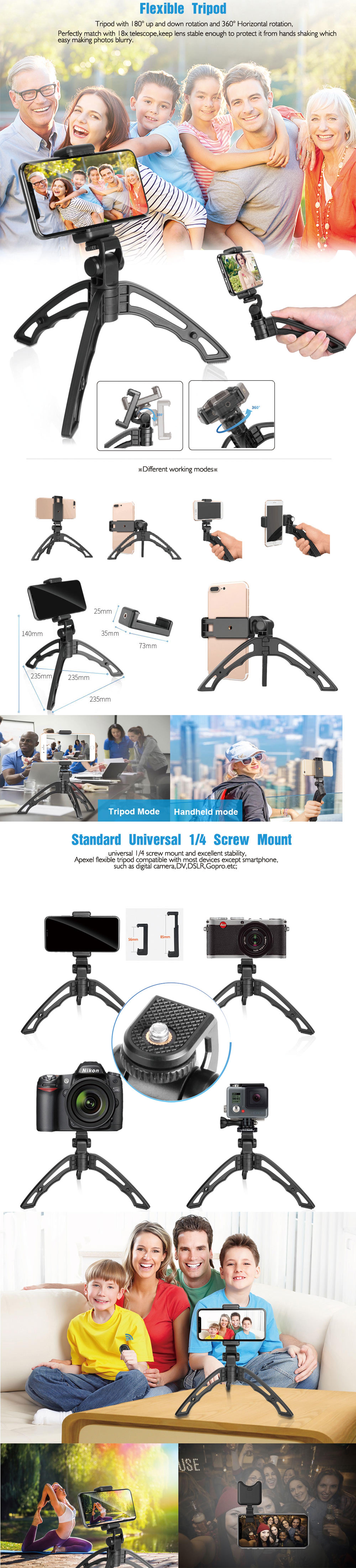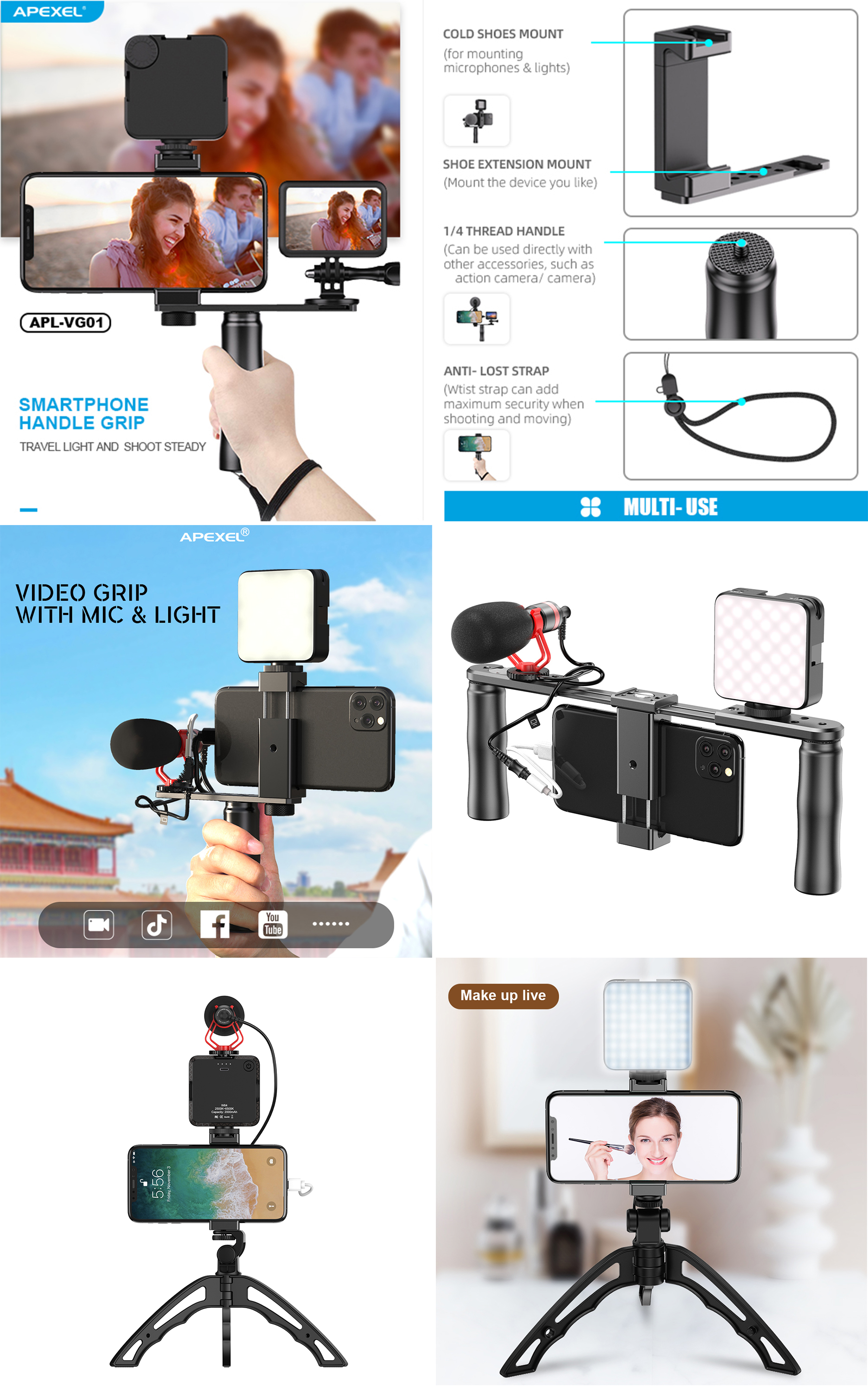 Apexel Professional Microphone Live Streaming LED Light Accessory Tripod Portable Vlog Youtube Phone Kit