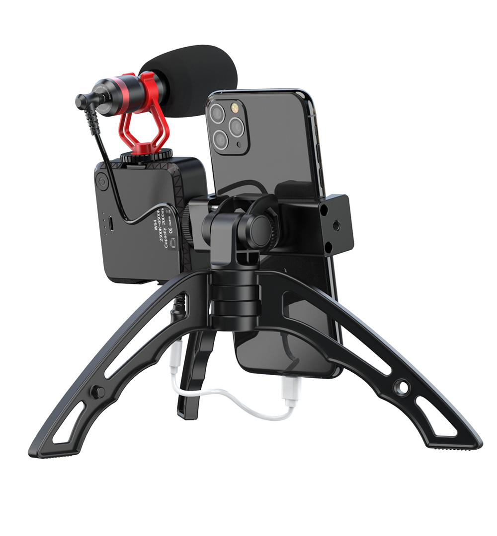 JJ04 Stable Handheld Tripod with Microphone Rechargeable Light