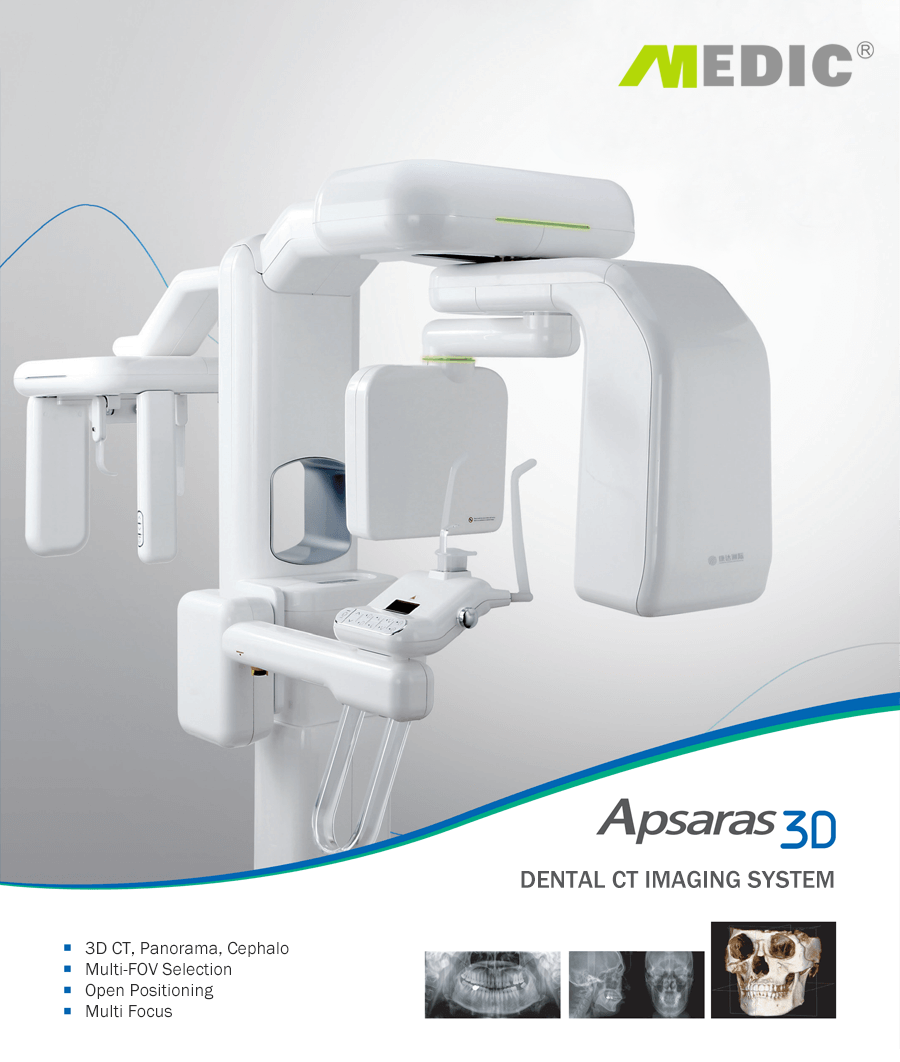 Apsaras 3D Oral CT is a multifunctional oral CT that can take 3D images, 2D panoramic films, and 2D skull films. It is a new type of 3D CT designed by Shanghai Medico Industrial Co., Ltd. for mid-to-high-end users of 3D CT products.