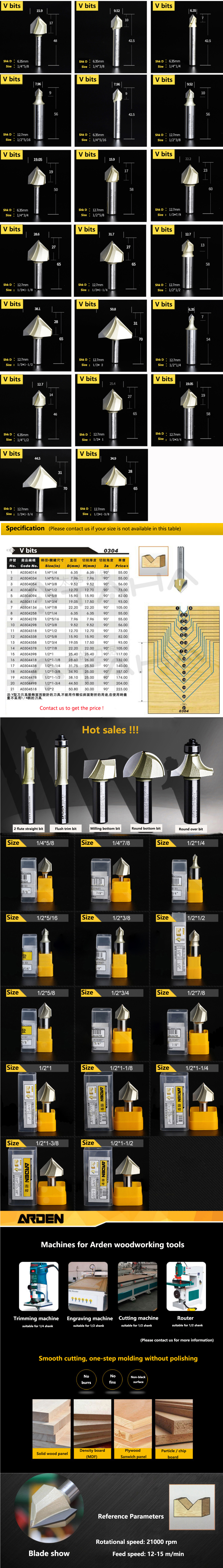 Arden woodworking tools V-shaped milling cutter fresas para madera
