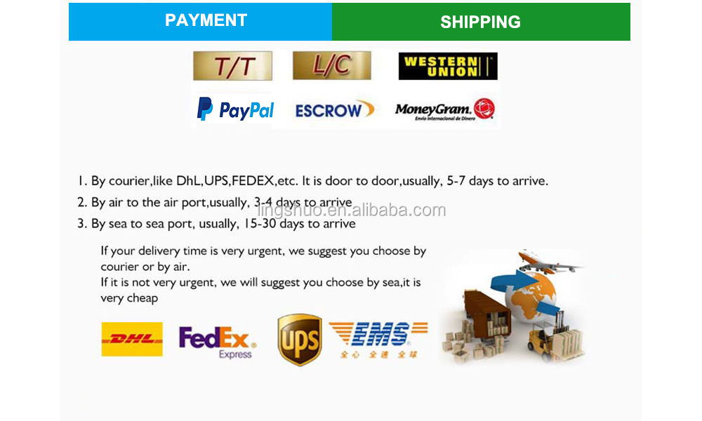| payment terms: | L/C, D/A, D/P, T/T, Western Union, MoneyGram | color: | custom made |